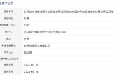 6月17日消息,駐馬店市黃淮信息產(chǎn)業(yè)投資有限公司2025年面向?qū)I(yè)投資者非公開發(fā)行公司債券項(xiàng)目獲深交所受理。本期債券擬發(fā)行金額7億元,承銷商/管理人為申萬宏源證券。駐馬店市黃淮信息產(chǎn)業(yè)投資有限公司為駐馬店市發(fā)展投資集團(tuán)全資子公司,后者隸屬于駐馬店市產(chǎn)業(yè)投資集團(tuán)…